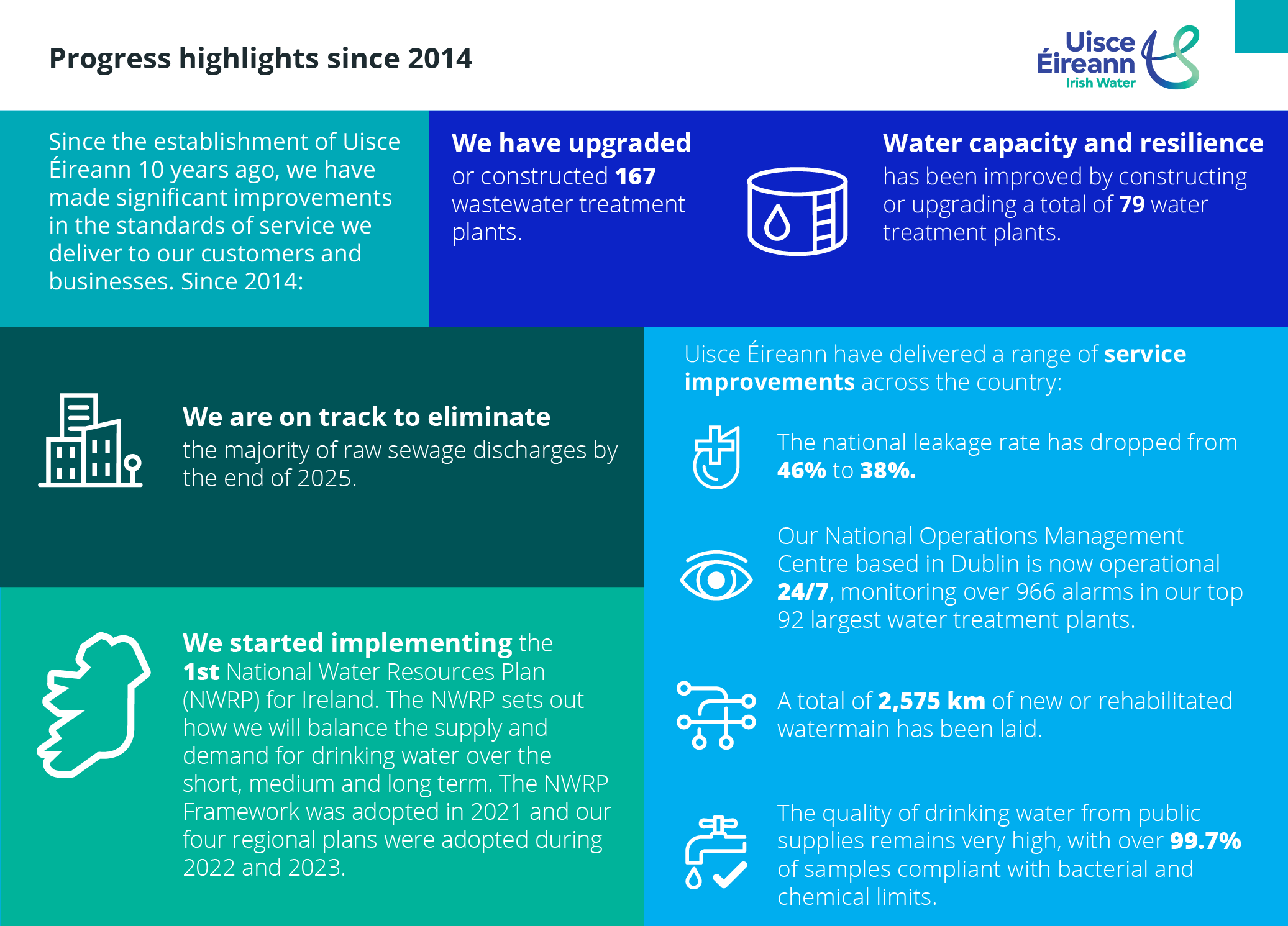 Tá sé de fhreagracht orainne a chinntiú go bhfaigheann ár gcustaiméirí go léir (teaghlaigh agus cuideachtaí) soláthar uisce óil atá sábháilte agus slán agus go mbaileofar a gcuid fuíolluisce, go gcaitear go cuí leis agus go gcuirtear ar ais go sábháilte chuig an gcomhshaol é.