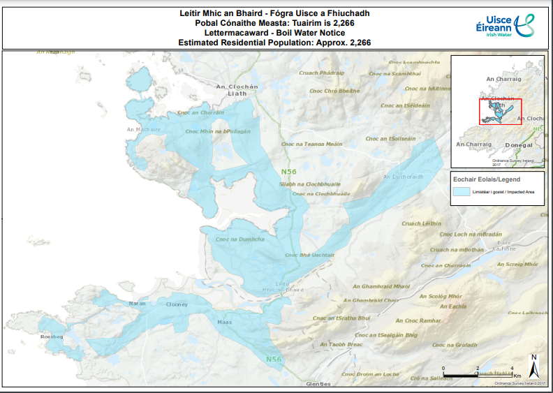 The notice was put in place to protect the health of approximately 2,266 customers supplied by the Lettermacaward Public Water Supply. The areas affected included Lettermacaward, Portnoo, Rossbeg, Cleangort, Doochary, Meenacross, Dooey, Glenties Road, Maghery, Inisfree Upper Island and Falmore areas.