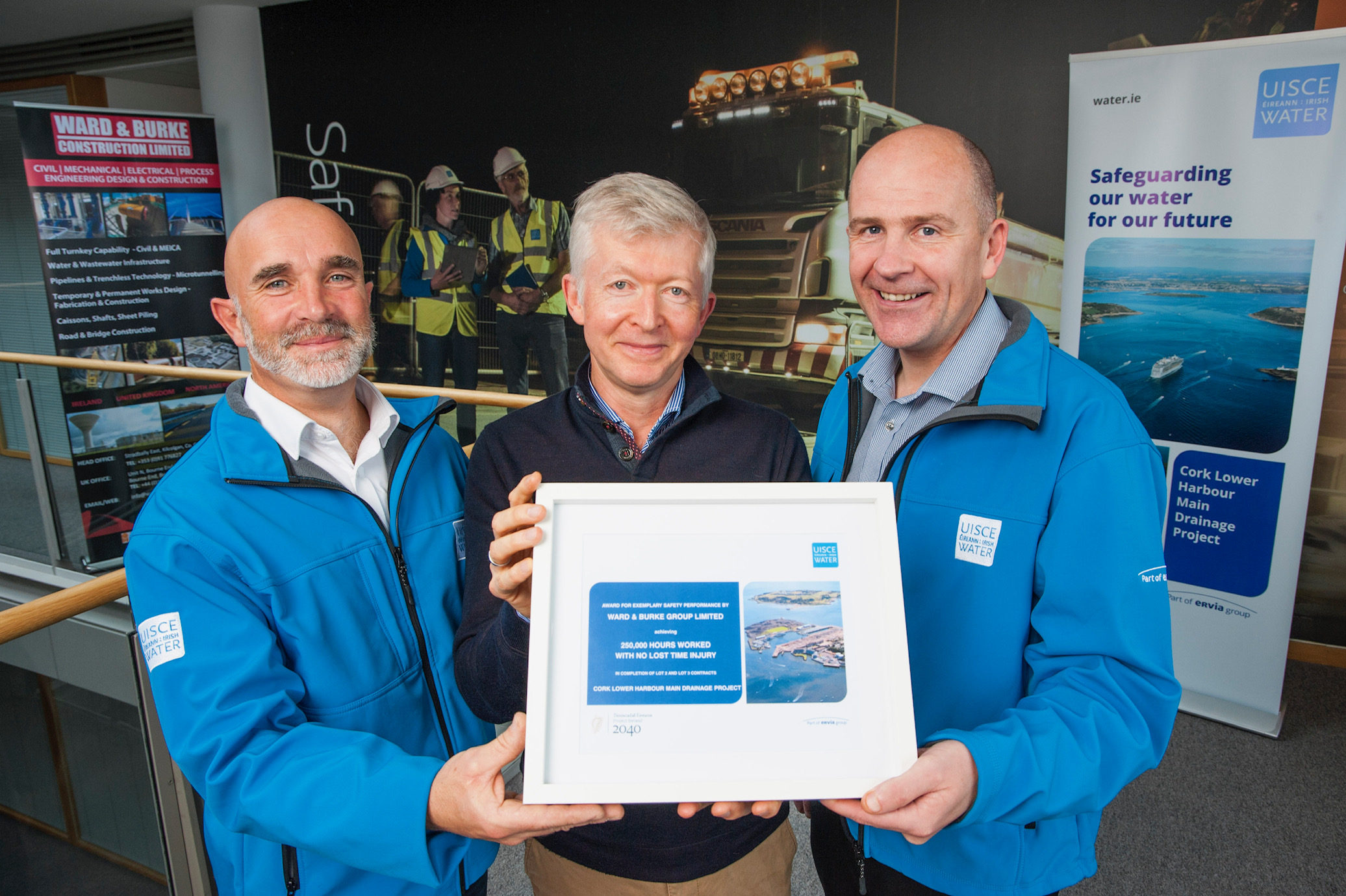 Uisce Éireann marks the significant milestone of 250,000 hours worked without a Lost Time Injury by Ward and Burke Group Limited in over 2 years working on the Cork Lower Harbour Main Drainage Project.