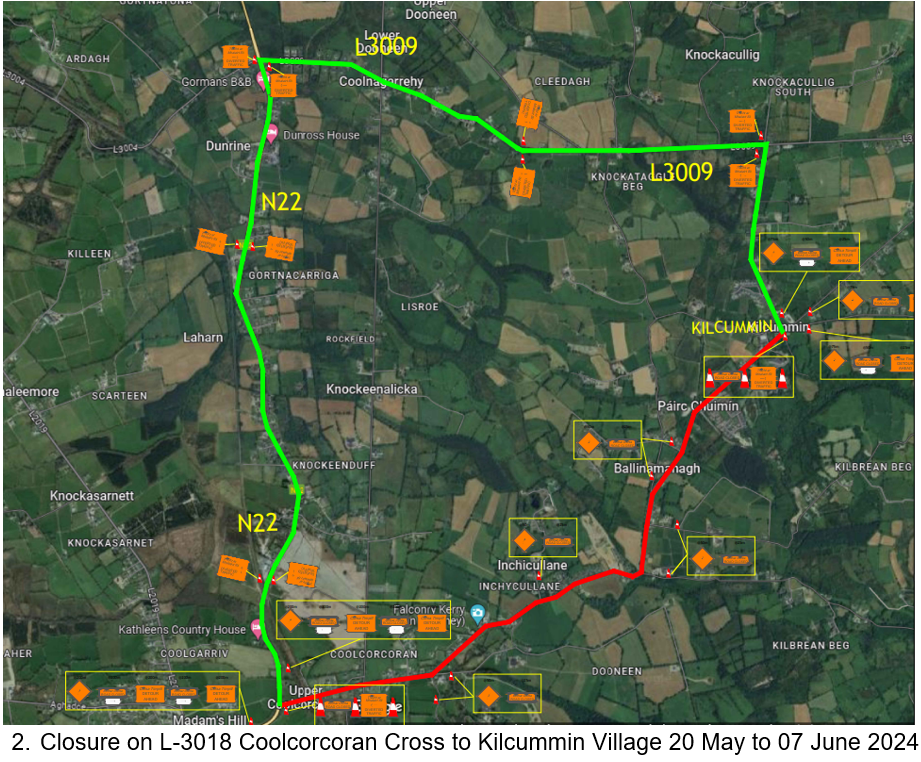 - L-3018 Coolcorcoran Cross to Kilcummin Village: 20 May to 07 June 2024