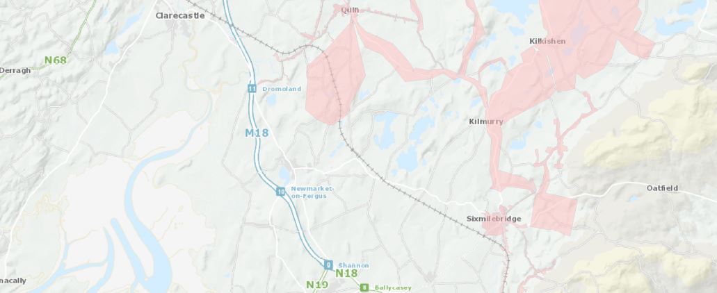 This scheme serves the areas shown on the attached map and includes Shannon, Newmarket-on-Fergus, Sixmilebridge, Kilmurry, Cratloe, Quin, Kilkishen and surrounding areas including group water schemes